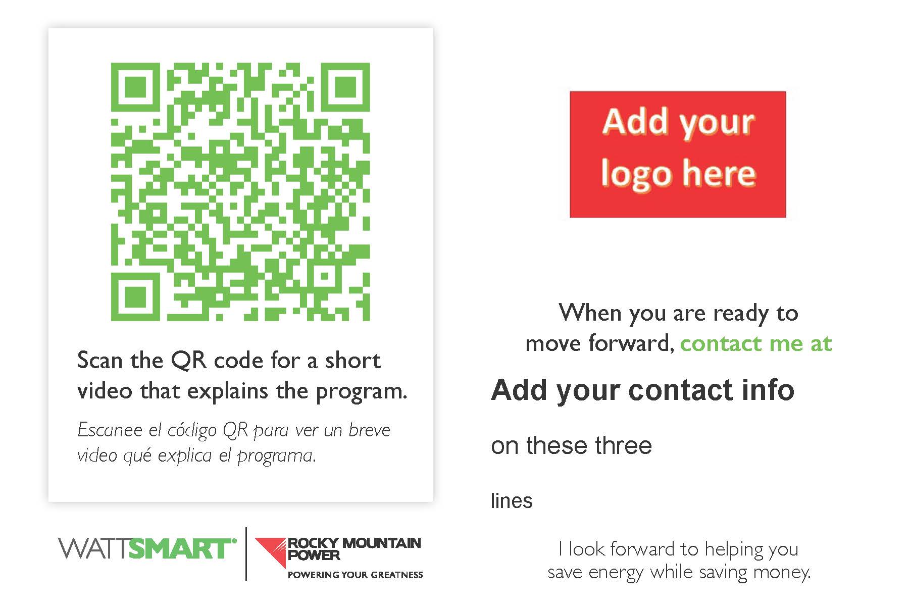Co-branding opportunities can be customized based on your needs. The Wattsmart team can develop marketing materials and share them with vendors for their own implementation as desired. Marketing tactics available include co-branded: